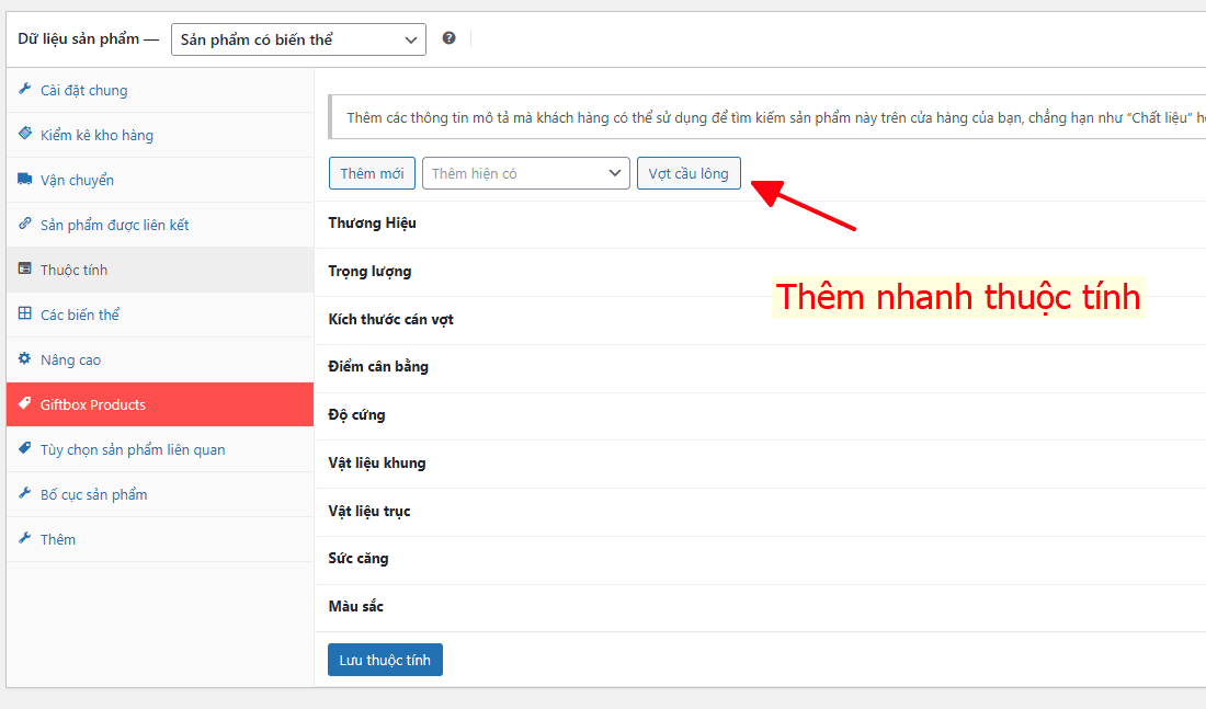 Vấn đề: Khi sản phẩm bạn có nhiều thuộc tính. Mỗi khi thêm sản phẩm bạn phải bấm thêm mới từng thuộc tính một sẽ rất lâu và mất thời gian
