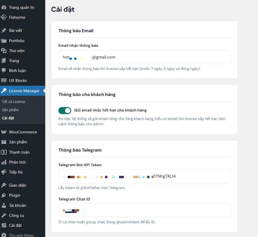 – Nhập Telegram Bot Token và Chat ID để nhận tin nhắn trực tiếp