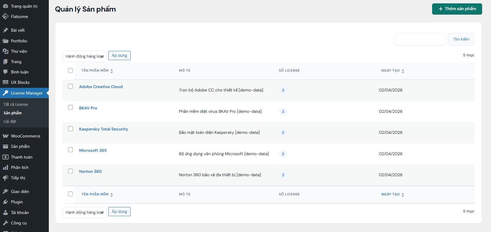 Tạo danh mục các phần mềm bạn đang kinh doanh để phân loại license: