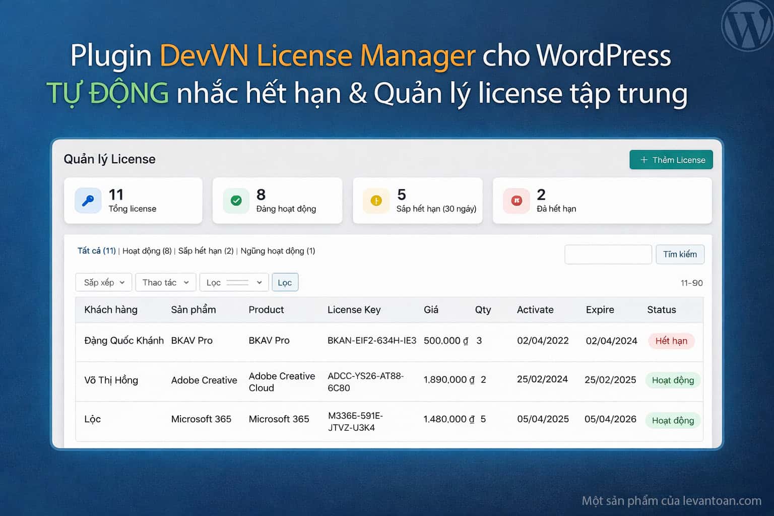 DevVN License Manager — Quản lý license tập trung, thông báo tự động, không để sót khách hàng nào