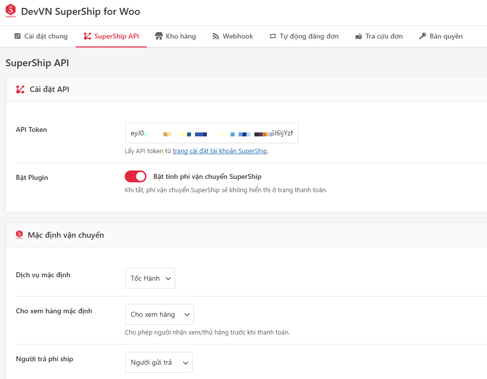 Tab SuperShip API là nơi bạn cấu hình toàn bộ hoạt động của plugin: