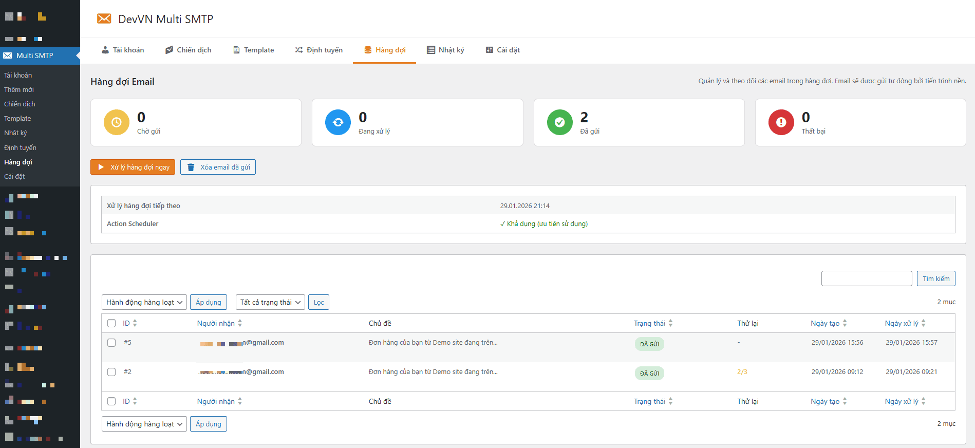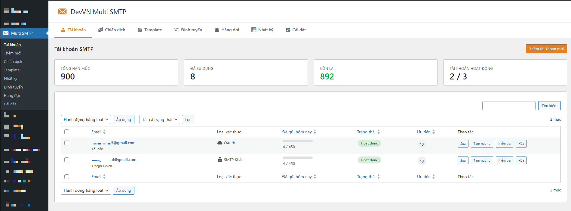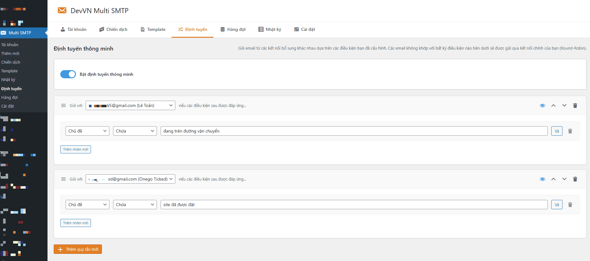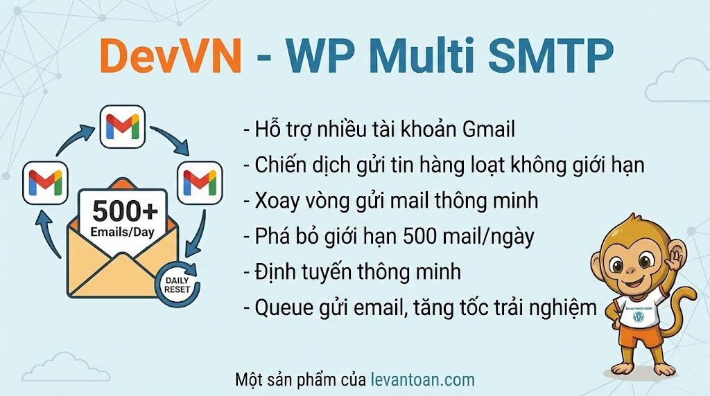 DevVN – WP Multi SMTP là giải pháp tối ưu giúp bạn kết nối không giới hạn tài khoản Gmail và tự động xoay vòng gửi mail thông minh. Plugin biến hạ tầng miễn phí của Google thành một hệ thống gửi email mạnh mẽ, đảm bảo email của bạn vào inbox với tỷ lệ cao