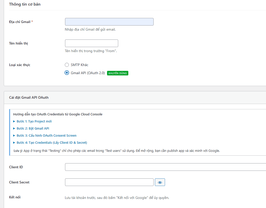 - Hỗ trợ cả Mật khẩu ứng dụng (App Password) cho các trường hợp đơn giản.
