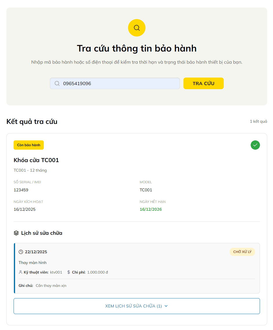 ✅ Quản lý bảo hành chuyên nghiệp và minh bạch