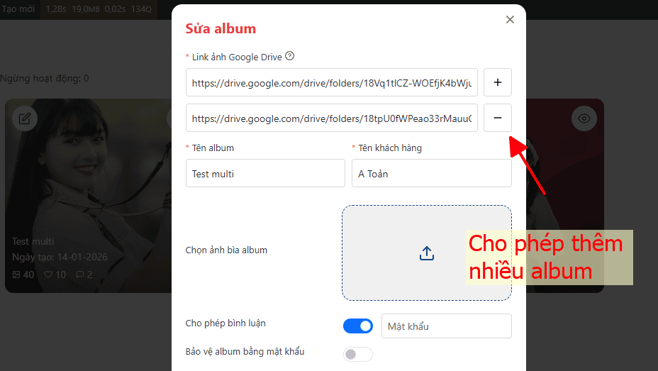 Hỗ trợ nhiều link google drive trên một album