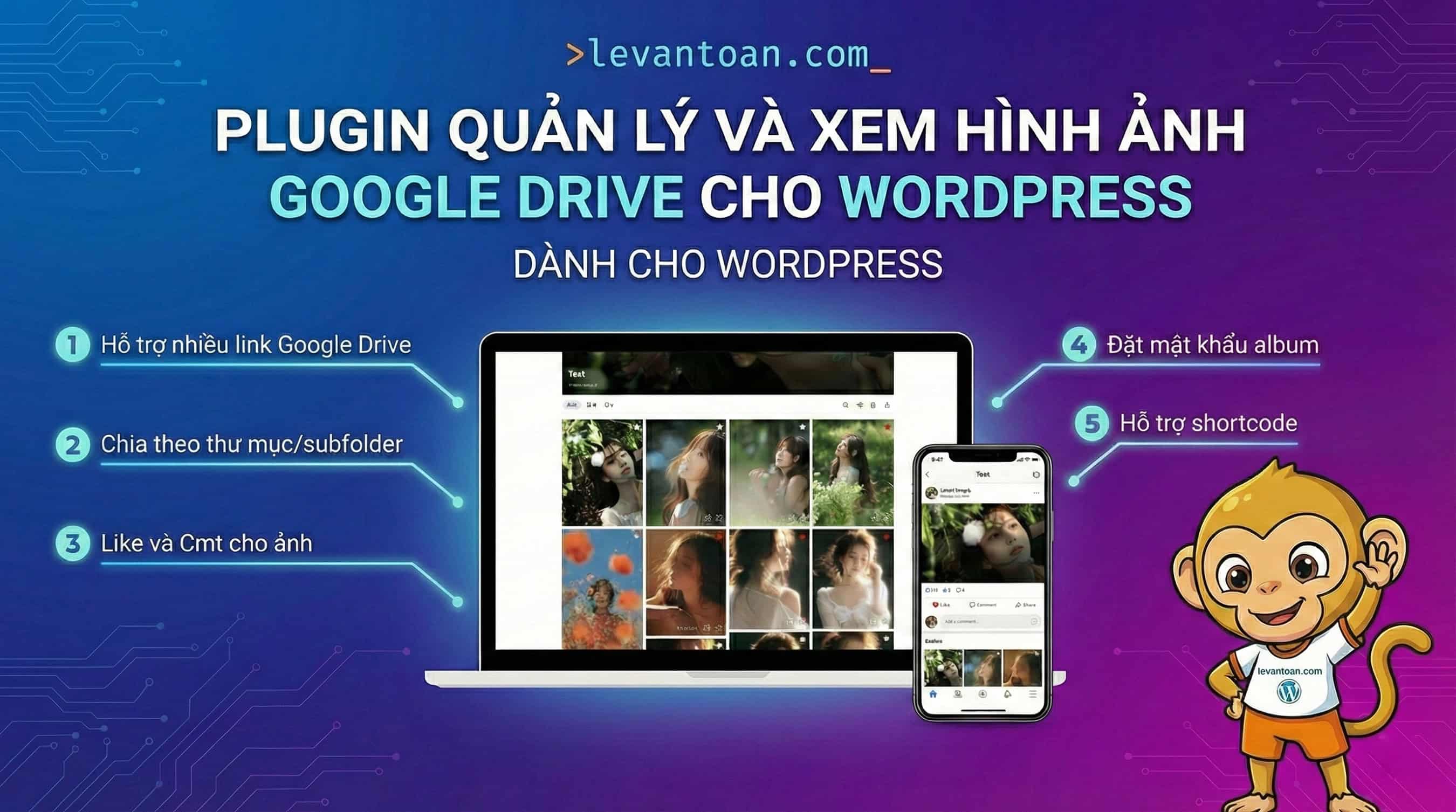 Plugin Cho phép quản lý/hiển thị hình ảnh từ thư mục Google Drive được chia sẻ công khai lên website. Ngoài ra cho phép khách hàng chọn ảnh yêu thích, để lại ghi chú và tải xuống ảnh gốc từ Google Drive