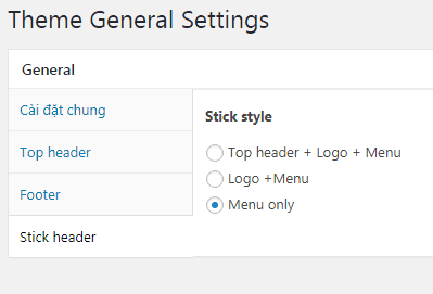 + Có thể lựa chọn stick phần menu ở 3 dạng: